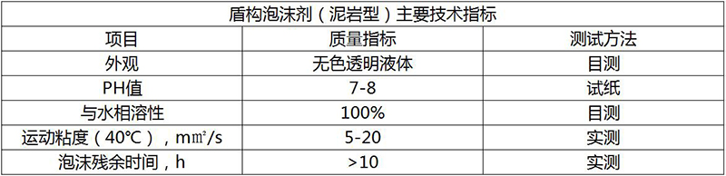 盾構泡沫劑(泥巖型)產(chǎn)品性能: